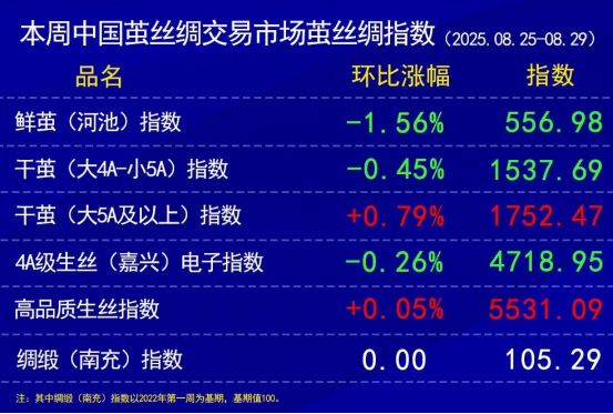 高品質生絲價格指數(shù)方面,本周維持價維穩(wěn)成交一般的運行特點,希望九月內外銷變化引領指數(shù)走出窄幅振蕩區(qū)。