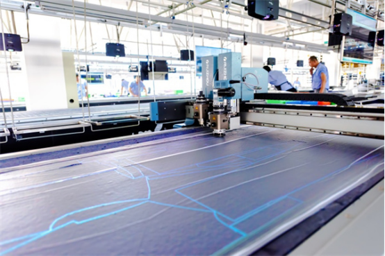 走進(jìn)大楊集團(tuán)的智能化生產(chǎn)車間,沒(méi)有傳統(tǒng)服裝工廠的嘈雜擁擠,取而代之的是智能設(shè)備有序運(yùn)轉(zhuǎn)的場(chǎng)景:智能懸掛系統(tǒng)載著面料精準(zhǔn)穿梭于各工序,自動(dòng)裁床根據(jù)數(shù)字版型高效切割,RFID芯片實(shí)時(shí)追蹤每一件定制服裝的生產(chǎn)進(jìn)度——這是大楊集團(tuán)自2016年啟動(dòng)數(shù)字化、智能化改造后的全新生產(chǎn)圖景。