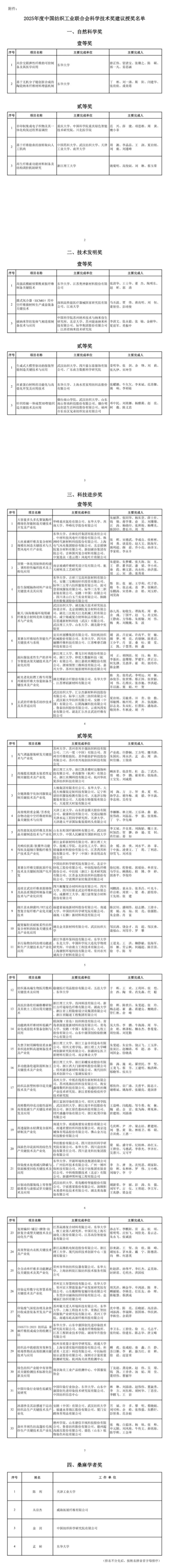 2025年度中國(guó)紡織工業(yè)聯(lián)合會(huì)科學(xué)技術(shù)獎(jiǎng)建議授獎(jiǎng)名單公示