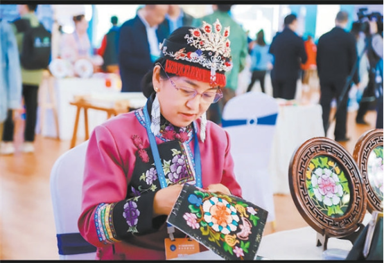 “以前只是聽說過,今天親眼看到、親手摸到,才感受到真功夫!”在觀眾停駐的目光中,河湟刺繡以指尖技藝喚醒美的共鳴。