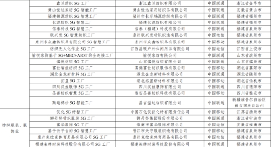 其中,悅達(dá)棉紡5G工廠、愉悅家紡基于5G+MEC+AIOT的全連接工廠、三六一度5G+智慧工廠、桐昆5G工廠等37個紡織、服裝和化纖企業(yè)項目上榜。