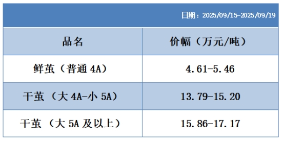 根據本周蠶繭報價按照指數(shù)方案形成的基準品價格區(qū)間