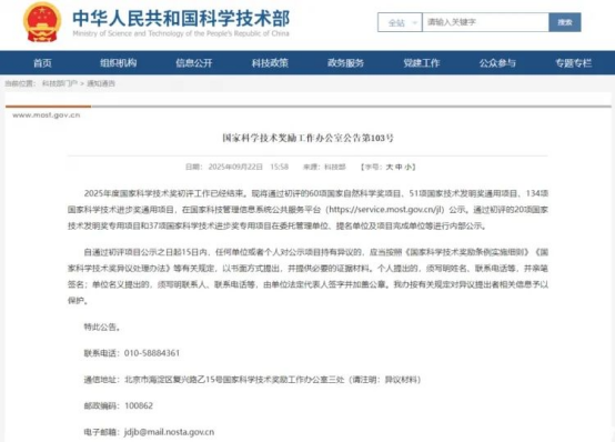 近日,科技部官網(wǎng)發(fā)布《國家科學(xué)技術(shù)獎勵(lì)工作辦公室公告第103號》。