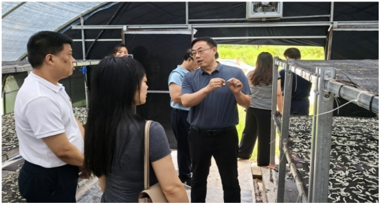 活動(dòng)重點(diǎn)調(diào)研了金橋鎮(zhèn)三臺(tái)村僵蠶養(yǎng)殖基地,針對(duì)基地在桑園秋季病蟲害防治、肥水管理和僵蠶飼養(yǎng)過程中的消毒防病等技術(shù)難點(diǎn),我院專家團(tuán)隊(duì)進(jìn)行了精準(zhǔn)指導(dǎo)和現(xiàn)場(chǎng)示范,并贈(zèng)送蠶科院《養(yǎng)蠶實(shí)用技術(shù)》手冊(cè),幫助基地技術(shù)人員更熟練掌握蠶桑種養(yǎng)殖技術(shù)要點(diǎn)。各黨支部同志就僵蠶養(yǎng)殖產(chǎn)業(yè)的創(chuàng)新發(fā)展、效益提升及蠶桑特色經(jīng)濟(jì)發(fā)展展開研討交流,并表示未來可加強(qiáng)產(chǎn)學(xué)研合作,進(jìn)一步加大“桑園+”種養(yǎng)結(jié)合模式、僵蠶產(chǎn)業(yè)高值化加工技術(shù)研究、蠶沙綜合利用等方面的關(guān)鍵技術(shù)協(xié)同攻關(guān)。