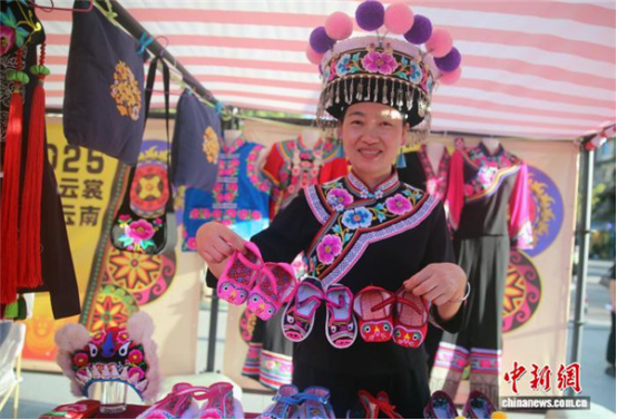 10月13日,繡娘介紹彝繡鞋子