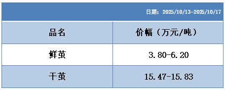 鮮繭價格指數(shù)上,廣西等主產(chǎn)區(qū)第三至第五批秋繭收購持續(xù)推進,工廠平均收購價環(huán)比上周繼續(xù)有所走高,帶動鮮繭價格指數(shù)收紅。短期鮮繭端的成本支撐效應有所強化。