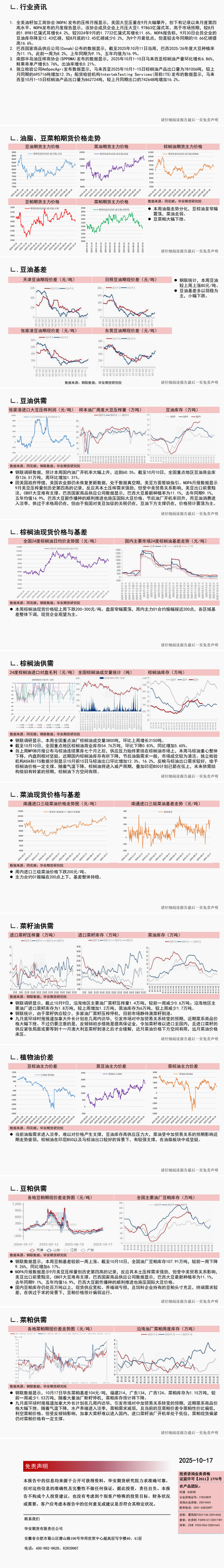 豆油(7630, 36.00, 0.47%):NOPA月報數(shù)據(jù)顯示9月美豆壓榨量創(chuàng)歷史第四高的記錄,反應其本土壓榨需求強勁,但受中美貿易關系影響,美豆出口前景黯淡,CBOT大豆(4521, -21.00, -0.46%)難有支撐。巴西國家商品供應公司數(shù)據(jù)顯示,巴西大豆最新種植率為11.1%,去年同期9.1%,五年均值16.9%,巴西大豆新作播種的順利推進也施壓國際大豆價格。節(jié)后油廠開機率回升,而豆油消費進入淡季,供過于求格局仍在,但由于我國對美豆加征的關稅仍在,豆油下方支撐仍在,價格預計震蕩為主。