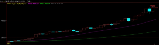 COMEX黃金(582, 8.80, 1.54%)期貨漲3.82%,報4374.3美元/盎司;現(xiàn)貨黃金漲2.48%,報4357.36美元/盎司;盤中均一度創(chuàng)歷史新高。COMEX白銀(8131, -9.00, -0.11%)期貨漲2.59%,報51.4美元/盎司。