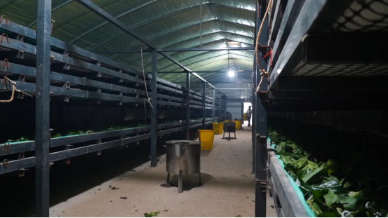 轉(zhuǎn)機(jī)發(fā)生在2021年。同村村民李洪康率先嘗試種桑養(yǎng)蠶并獲得成功,這一示范效應(yīng)迅速點燃了周邊群眾的積極性。2024年,王李祥也開始在家中進(jìn)行小規(guī)模試養(yǎng),并在李洪康的協(xié)助指導(dǎo)下初步掌握了養(yǎng)殖技術(shù)??吹矫骼实那熬昂?,2025年,王李祥果斷投入58萬元,通過整合山地、荒坡等資源,開啟了規(guī)?;B(yǎng)殖之路?!澳壳拔曳N植了30畝桑樹,建成2個產(chǎn)房。如果全部投產(chǎn),可養(yǎng)殖30盒約90萬只蠶?!蓖趵钕榻榻B道。