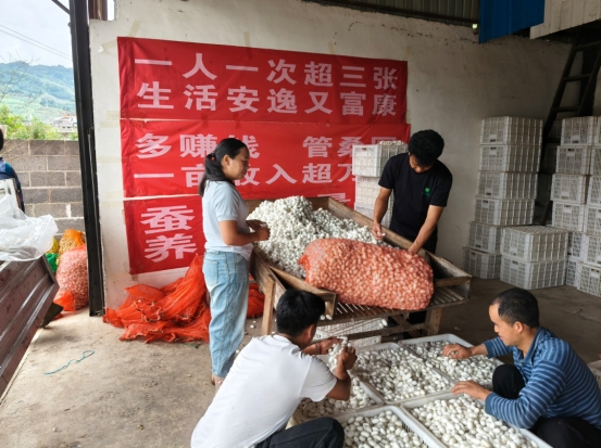 鄉(xiāng)政府不定期舉辦蠶桑產(chǎn)業(yè)發(fā)展培訓現(xiàn)場會,邀請農(nóng)技專家開展種養(yǎng)技術(shù)實操教學,創(chuàng)新開展以蠶桑產(chǎn)業(yè)發(fā)展為主題的情景黨課,并對年度高收入示范戶進行獎勵。以“技術(shù)賦能+榜樣獎勵”雙輪驅(qū)動,帶動農(nóng)戶擴大規(guī)模、引進新技術(shù)。在示范戶的榜樣作用和可觀經(jīng)濟收益的雙重驅(qū)動下,全鄉(xiāng)超100戶農(nóng)戶投身蠶桑產(chǎn)業(yè),覆蓋范圍從重點村向周邊延伸,該產(chǎn)業(yè)已成為群眾增收的重要支柱之一。