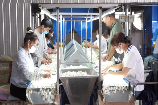 永仁縣通過(guò)推行“小蠶共育+大蠶分戶飼養(yǎng)”模式,定期組織技術(shù)培訓(xùn),推動(dòng)農(nóng)技人員下沉到村、指導(dǎo)到戶,確保蠶桑產(chǎn)業(yè)科學(xué)化、規(guī)范化發(fā)展。目前,像姜明這樣的專業(yè)養(yǎng)蠶戶,在永仁縣有1462戶,桑園面積發(fā)展到了2萬(wàn)多畝,每年能生產(chǎn)蠶繭1400噸,產(chǎn)值8000萬(wàn)元以上。除了培育養(yǎng)蠶專業(yè)戶,永仁縣還著力打造種桑養(yǎng)蠶專業(yè)村,村集體投入資金建設(shè)標(biāo)準(zhǔn)化桑園、大蠶房,再以出租的方式交由蠶農(nóng)管理,讓蠶桑產(chǎn)業(yè)成為壯大村級(jí)集體經(jīng)濟(jì)的有力引擎。