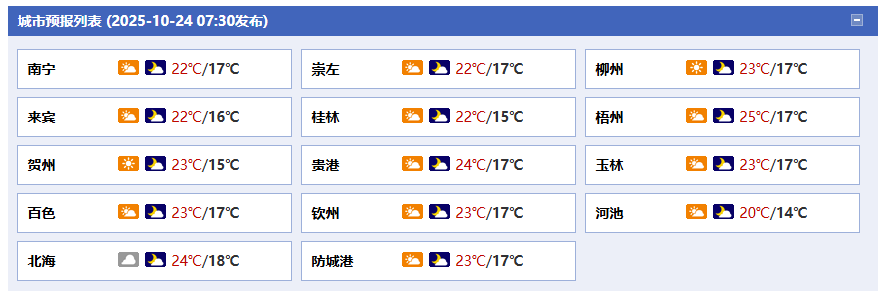 廣西氣象臺(tái)24日05時(shí)發(fā)布預(yù)報(bào):