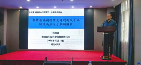 會議期間,安徽省農(nóng)科院蠶桑所專家團隊全面參與各項議程。蘇雪強助理研究員在大會上作題為“安徽省桑樹種質(zhì)資源創(chuàng)新及干旱脅迫響應分子機制解析”的報告,系統(tǒng)介紹了安徽省農(nóng)科院蠶桑所在桑樹新品種選育及逆境生理研究方面的最新進展,受到與會專家的高度關注。汪泰初研究員主持桑樹組分組討論,就產(chǎn)業(yè)相關技術難點與合作方向同與會代表進行了深入交流。團隊其他成員也在分組會議上積極發(fā)言,展現(xiàn)了安徽省農(nóng)科院蠶桑所科研人員的專業(yè)素養(yǎng)。