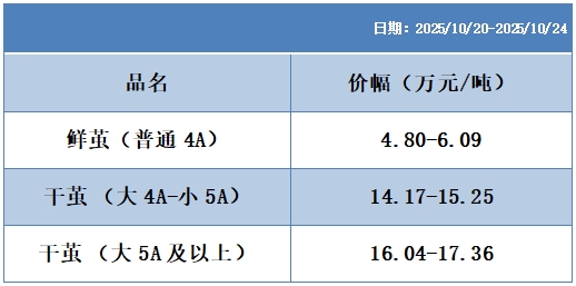 本周高品位生絲協(xié)作單位成交價格區(qū)間
