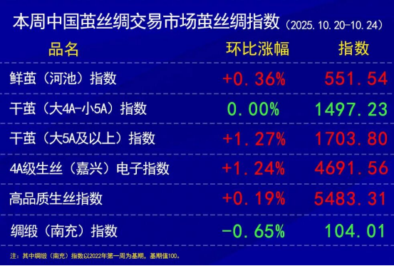 本周鮮繭價格指數(shù)延續(xù)小幅收紅格局。