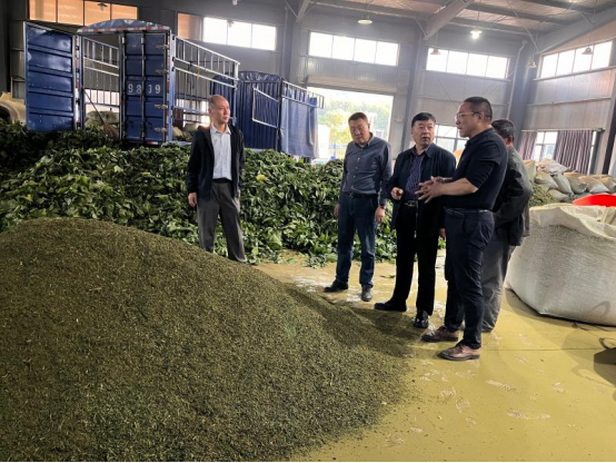 范濤一行首先對黃山桑茶茶業(yè)有限公司新建高標(biāo)準(zhǔn)桑葉加工項目提出指導(dǎo)性建議,一是在加工設(shè)備材料選購上重點要關(guān)注符合生態(tài)環(huán)保標(biāo)準(zhǔn),二是在加工過程重點把控好殺青溫度、時間對產(chǎn)品品質(zhì)的影響,三是加強(qiáng)生產(chǎn)車間周圍環(huán)境的防污防塵工作。在新發(fā)展的黃山市山里山茶業(yè)有限公司桑葉加工點,座談交流了茶園間種桑樹生態(tài)桑園建設(shè),桑飼料在畜禽、水產(chǎn)養(yǎng)殖上的開發(fā)利用技術(shù)?,F(xiàn)場幫助黃山徽菜郎農(nóng)業(yè)開發(fā)有限公司初步解決了食品級桑葉粉供應(yīng)渠道問題,探討了桑葛系列產(chǎn)品的研發(fā)和銷售。在黃山藍(lán)天方園實業(yè)有限公司,對山水畫廊絲綢文化園果桑生態(tài)園提升、桑食品品系的豐富以及項目申報、文旅融合等方面的技術(shù)需求,表示要給予積極幫助。