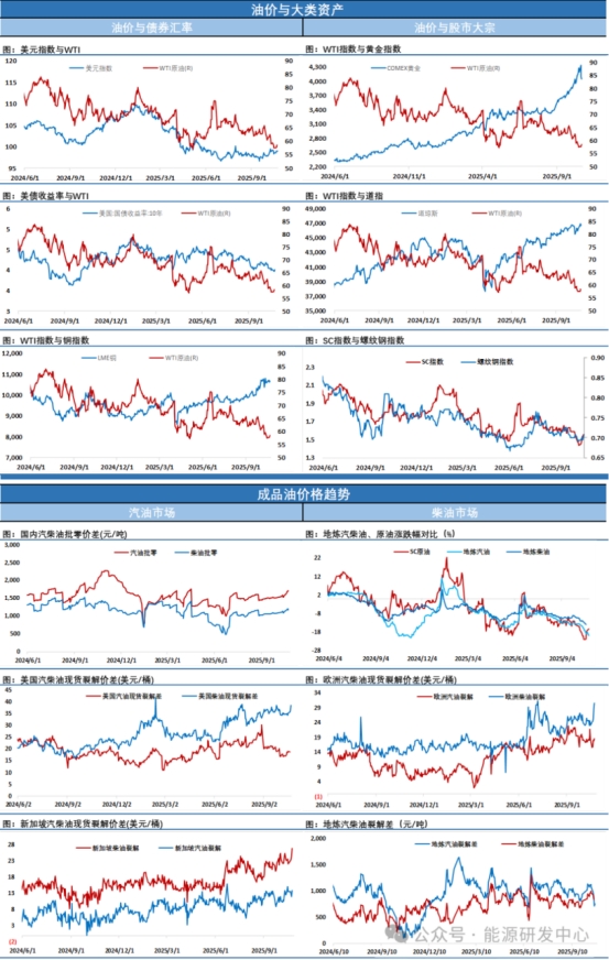 【2】阿格斯報道美國對俄羅斯兩大石油生產(chǎn)商實施制裁,疊加庫存下降及煉廠檢修季,歐洲柴油裂解價差創(chuàng)3個月新高,短期或繼續(xù)走強。國際原油期貨大漲,中國成品油價格跟進緩慢,煉油利潤收窄, 市場內(nèi)弱外強,汽柴油出口套利1月以來首次轉(zhuǎn)正。10月24日,西北歐柴油裂解價差創(chuàng)下31美元/桶的三個月新高,周環(huán)比大漲7美元/桶。同日,布倫特柴油期貨合約11-12月價差高達16.50美元/噸,較22日高6美元/噸。10月24日,中國渤海灣汽柴油裂解價差分別為9.1美元/桶和19.8美元/桶,周環(huán)比跌6.5美元/桶和4.3美元/桶。貿(mào)易端因恐漲適度加大汽油船單采購;但對因?qū)ξ磥硇枨罂纯?,柴油采買低迷。同日,中國-新加坡汽柴油出口利潤周環(huán)比分別上漲5.3美元/桶和9.1美元/桶至2.2美元/桶和5.7美元/桶。