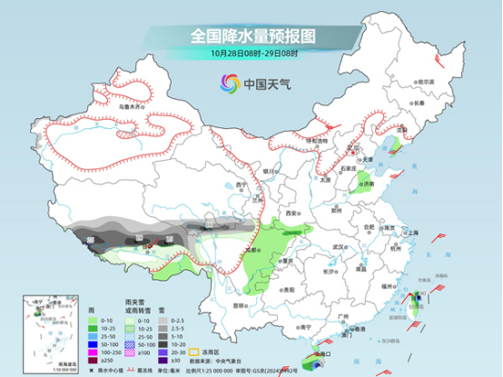 未來(lái)三天(10月28日至30日),青藏高原部分地區(qū)雨雪頻繁,局地有暴雪或大暴雪,需注意做好相關(guān)防御措施。此外,明天,我國(guó)中東部地區(qū)降水將增多,公眾雨雪天出行請(qǐng)留意交通安全。氣溫方面,今明天,我國(guó)大部氣溫回升,但晝夜溫差拉大,公眾請(qǐng)適時(shí)調(diào)整著裝,謹(jǐn)防感冒。