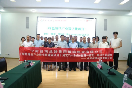 啟動(dòng)會(huì)后,雙方負(fù)責(zé)人親切握手并合影,并與全體參會(huì)人員合影留念,象征雙方合作的緊密與深入,也象征著《綠色繅絲產(chǎn)業(yè)數(shù)字化建設(shè)項(xiàng)目》業(yè)財(cái)一體化一期項(xiàng)目正式啟動(dòng)。相信在雙方的共同努力下,該項(xiàng)目一定能夠取得圓滿(mǎn)成功,為銀鴻絲業(yè)的綠色繅絲產(chǎn)業(yè)數(shù)字化發(fā)展注入新的活力,推動(dòng)公司發(fā)展邁向新高度。