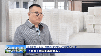 鎏金銅蠶(石泉)繭絲綢有限責(zé)任公司負(fù)責(zé)人 馮彬:(目前)回購的繭量有4/5,預(yù)估本蠶季蠶繭回收總量有15000斤,然后繭款有40余萬(元)。