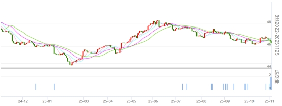 今日(周二)生絲盤面承接昨日走勢繼續(xù)有所下行,成交一般。作為現(xiàn)貨月的251125合約,今日繼續(xù)有成交增倉。