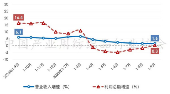 根據(jù)國家統(tǒng)計(jì)局?jǐn)?shù)據(jù),2025年前三季度產(chǎn)業(yè)用紡織品行業(yè)規(guī)模以上企業(yè)的營業(yè)收入和利潤總額分別同比增長1.6%和0.3%;根據(jù)中國產(chǎn)業(yè)用紡織品行業(yè)協(xié)會測算,行業(yè)規(guī)模以上企業(yè)的營業(yè)利潤率為3.7%,同比下降0.1個百分點(diǎn);行業(yè)虧損面為24.2%,較二季度收窄2.6個百分點(diǎn)。自2025年一季度以來,行業(yè)的營業(yè)收入增速逐月放緩,利潤總額增速再次進(jìn)入下降通道,行業(yè)經(jīng)濟(jì)平穩(wěn)運(yùn)行的基礎(chǔ)仍需鞏固。