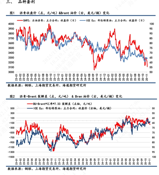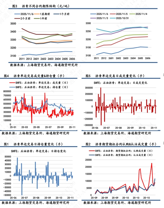 【1】盤面表現(xiàn):BU主力2601高開后回落,開盤即最高價,全天低位震蕩,最終收于3109元/噸,跌幅1.80%,自10月27日高點以來持續(xù)回落,7天累計跌幅5.3%,創(chuàng)下年內(nèi)新低。次月合約2602跌幅 2.04%,合約期限結(jié)構(gòu)呈現(xiàn)近低遠(yuǎn)高的Contango結(jié)構(gòu),與1星期前的back結(jié)構(gòu)相反。