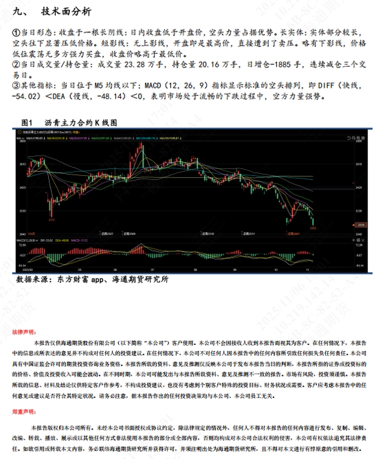 【6】短期展望:短期仍跟隨油價擺動,價格弱勢看待,自身上行空間仍受制于需求減弱和庫存壓力兩方面影響。關(guān)注3000元/噸下跌整數(shù)關(guān)口。MACD指標(biāo)可關(guān)注快慢線何時穿越0軸上方。年底前OPEC+增產(chǎn)沖擊油價重心,瀝青大概率跟跌重心下移。
