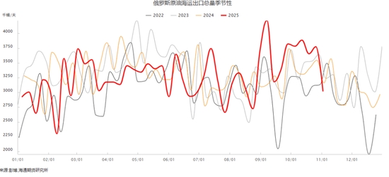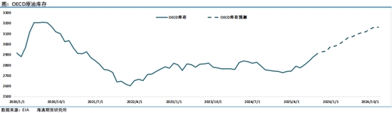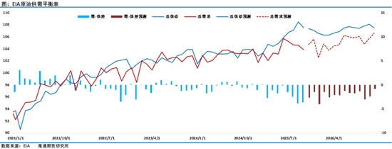 雖然西方國家加大了對俄羅斯制裁力度,俄羅斯的海運(yùn)原油最近二周時(shí)間出現(xiàn)了回落。但11月7日EIA在最新一期月報(bào)中維持全球石油庫存將在2026年全年增加的判斷,并認(rèn)為這將在未來幾個(gè)月對油價(jià)產(chǎn)生顯著的下行壓力。布倫特原油價(jià)格在2025年第四季度將降至平均每桶62美元,2026年則降至每桶52美元。