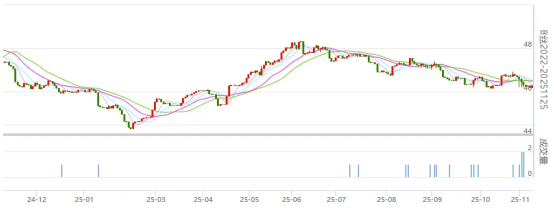 今日(2025年11月10日,周一)中國繭絲綢交易市場生絲電子指數(shù)上漲0.11%報收于4656.22點。B絲2022D(商檢4A級生絲):251125合約上漲0.09萬元報收于46.29萬元;260325合約上漲0.06萬元報收于46.80萬元;260925合約報平,收于46.80萬元。