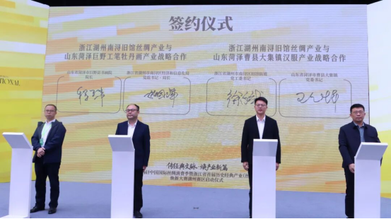 湖州南潯舊館絲綢產(chǎn)業(yè)與山東菏澤巨野中國工筆畫產(chǎn)業(yè)戰(zhàn)略合作/湖州南潯舊館絲綢產(chǎn)業(yè)與山東菏澤曹縣大集鎮(zhèn)漢服產(chǎn)業(yè)戰(zhàn)略合作簽約儀式
