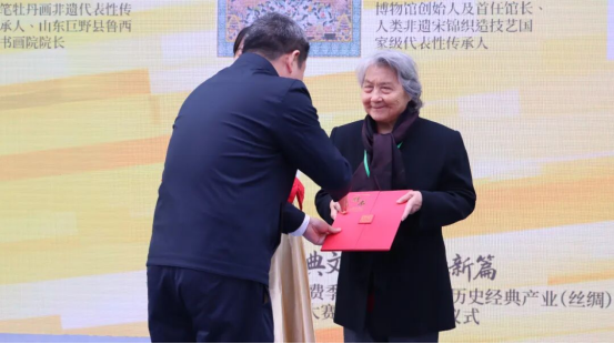 研究員級(jí)高工、蘇州絲綢博物館創(chuàng)始人及首任館長、人類非遺宋錦織造技藝國家級(jí)代表性傳承人錢小萍大師受聘為為“中國絲綢非遺技藝傳承與產(chǎn)業(yè)轉(zhuǎn)化研究中心”高級(jí)顧問。