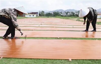 據(jù)廣新集團(tuán)鄉(xiāng)村振興駐陽春市合水鎮(zhèn)幫扶工作隊(duì)隊(duì)員鄧金朋介紹說,布匹在陽光下暴曬時(shí),要平挺,不卷邊,整個(gè)染整過程,絲綢布匹在薯莨汁水中,浸泡次數(shù)一般不少于20次。合水鎮(zhèn)的項(xiàng)目建設(shè)了兩個(gè)曬布廠,是廣新集團(tuán)鄉(xiāng)村振興駐鎮(zhèn)幫鎮(zhèn)扶村的一個(gè)產(chǎn)業(yè)幫扶項(xiàng)目,每年可以增加當(dāng)?shù)卮寮w收入近50萬元,提供家門口就業(yè)崗位150多個(gè)。