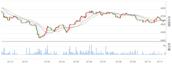 今日(周四)生絲盤面各遠近合約延續(xù)窄幅震蕩態(tài)勢,現貨月251125生絲合約小幅收跌,其余合約多數呈小幅收紅。