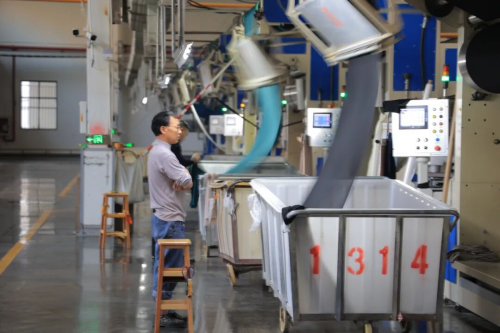 與此同時(shí),商水縣深入推進(jìn)紡織服裝產(chǎn)業(yè)鏈延鏈、補(bǔ)鏈、強(qiáng)鏈,大力實(shí)施數(shù)字賦能行動(dòng),推動(dòng)產(chǎn)業(yè)向智能化轉(zhuǎn)型。在商水縣產(chǎn)業(yè)集聚區(qū)的阿爾本服裝科技產(chǎn)業(yè)園內(nèi),智能吊掛系統(tǒng)正將裁片精準(zhǔn)輸送到每個(gè)工位,MES生產(chǎn)管理系統(tǒng)實(shí)時(shí)顯示各生產(chǎn)線的進(jìn)度數(shù)據(jù),700多個(gè)自主研發(fā)的數(shù)字化系統(tǒng)讓這家企業(yè)成為全省唯一的紡織服裝類智能制造標(biāo)桿;在盛泰紡織的電子束全自動(dòng)生產(chǎn)線車間,實(shí)現(xiàn)了面料抗菌、防皺等功能的精準(zhǔn)加工,這條國內(nèi)唯一的生產(chǎn)線,讓企業(yè)高端面料的市場溢價(jià)率達(dá)30%以上。
