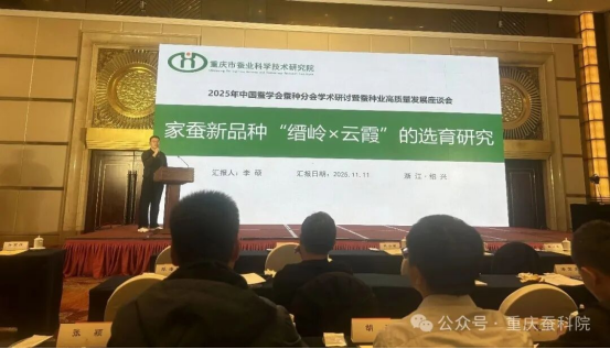 在學術(shù)研討會上,蠶科院家蠶種質(zhì)創(chuàng)制中心負責人李碩作了《家蠶新品種“縉嶺×云霞”的選育研究》專題報告,系統(tǒng)介紹了新品種“縉嶺×云霞”選育的攻關(guān)歷程、成果及品種性狀,充分展示了我院在家蠶育種領(lǐng)域的扎實積累與創(chuàng)新實力,贏得了與會專家的高度關(guān)注與較高評價。