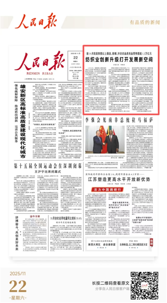 11月22日出版的《人民日報》 以柯橋為例,刊發(fā)《紡織業(yè)創(chuàng)新升級打開發(fā)展新空間》一文,具體內(nèi)容如下: