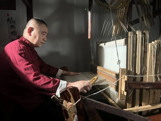 在體驗(yàn)館,游人還可以親自體驗(yàn)古法綾絹生產(chǎn)的不同工序??椩臁⒀b裱、繪扇……在非遺傳承人的指導(dǎo)下,與這項(xiàng)千年技藝來(lái)一次近距離接觸。