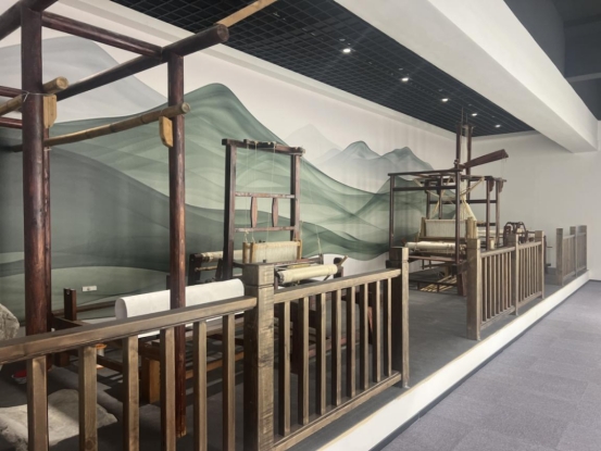 傳承館內(nèi)收藏了大量具有學(xué)術(shù)、藝術(shù)價(jià)值的手稿、典籍、文獻(xiàn)資料,并陳列著綾絹織造技藝的生產(chǎn)工具和生產(chǎn)技術(shù)流程。
