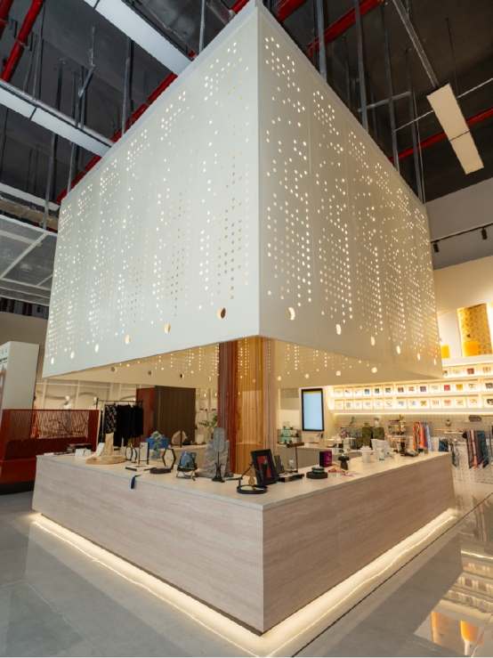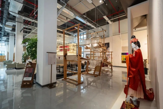 這里不僅匯聚了數(shù)百家優(yōu)質(zhì)絲綢商戶,還有與浙江理工大學(xué)攜手打造的國(guó)際絲綢時(shí)尚青創(chuàng)中心、服裝設(shè)計(jì)國(guó)家級(jí)虛擬仿真實(shí)驗(yàn)教學(xué)中心與數(shù)字化藝術(shù)設(shè)計(jì)產(chǎn)教基地、湖州絲綢品種傳承保護(hù)中暨蠶桑絲織技藝研學(xué)基地等多個(gè)基地及絲綢文化館、《浙理·絲古織今》科普工作室等多個(gè)絲綢產(chǎn)業(yè)空間。