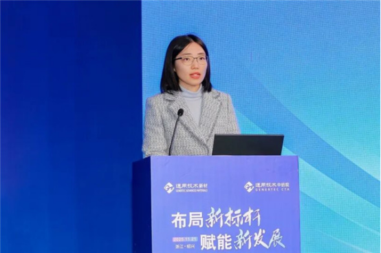 通用技術(shù)中紡院高纖復(fù)材所副所長李婷以《中紡院產(chǎn)業(yè)用紡織品實(shí)踐及應(yīng)用》為題,介紹了中紡院與纖維基復(fù)合材料國家工程研究中心的基本情況與在推動產(chǎn)業(yè)用紡織品科技創(chuàng)新與成果轉(zhuǎn)化方面的探索與實(shí)踐。中紡院在產(chǎn)業(yè)用紡織品領(lǐng)域圍繞先進(jìn)纖維材料、多維織物及結(jié)構(gòu)復(fù)合材料、柔性紡織品及多功能復(fù)合材料方向持續(xù)開展技術(shù)攻關(guān)并拓展應(yīng)用場景,其代表性成果已在多個國家重點(diǎn)工程和產(chǎn)業(yè)領(lǐng)域?qū)崿F(xiàn)應(yīng)用。