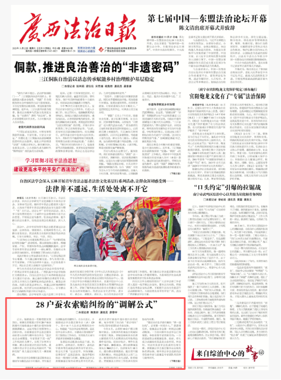 近日,隨著最后一筆賠償款發(fā)放到位,鹿寨縣黃冕鎮(zhèn)古賞村28戶蠶農(nóng)因桑葉污染致蠶蟲中毒的補償糾紛得到圓滿解決。這起可能引發(fā)群體性上訪的糾紛,在鹿寨縣法學(xué)會基層服務(wù)站的牽頭協(xié)調(diào)與柳州市法學(xué)會“基層站點全域覆蓋、專家資源下沉一線”工作機制的支撐下,實現(xiàn)了涉事雙方和解、群眾息訴罷訪的良好效果,成為柳州市法學(xué)會系統(tǒng)運用新時代“楓橋經(jīng)驗”助力基層治理的又一典型案例。