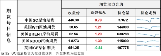 【1】WTI主力原油(607, -8.60, -1.40%)期貨收漲0.7美元,漲幅1.21%,報58.65美元/桶;布倫特主力原油期貨收漲0.74美元,漲幅1.2%,報62.54美元/桶;INE原油期貨收漲0.79%,報446.3元。