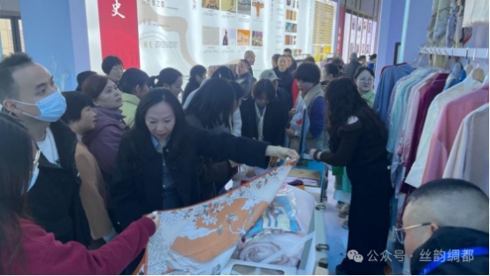 在六合服飾的展位上,絲綢家居服、真絲圍巾、領(lǐng)帶、桑蠶絲被、蠶絲棉衣、真絲床上用品件套及絲綢文創(chuàng)系列產(chǎn)品整齊陳列,柔美的質(zhì)感與雅致的設(shè)計(jì)吸引眾多觀眾駐足品鑒、咨詢(xún)選購(gòu)。其中,公司首次推出的“金合”牌高端絲綢外穿服裝系列尤為搶眼,憑借創(chuàng)新設(shè)計(jì)與精湛工藝,成為全場(chǎng)關(guān)注的核心,不少采購(gòu)商與消費(fèi)者當(dāng)場(chǎng)表達(dá)合作意向與購(gòu)買(mǎi)需求。