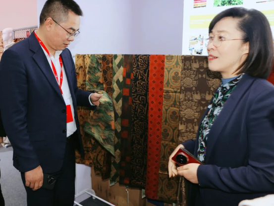 四川省絲綢科學(xué)研究院精選出最新研發(fā)科技產(chǎn)品、精美絲綢產(chǎn)品以及蜀錦、蜀繪等非遺特色產(chǎn)品,集中展示了其將科研成果與傳統(tǒng)技藝深度融合的豐碩成果,吸引了大量參觀者駐足欣賞。展會(huì)期間,盛秋平副部長(zhǎng)親臨絲綢院展位參觀指導(dǎo),了解了絲綢院在絲綢新材料、新工藝及非遺傳承創(chuàng)新方面的最新科研成果,并對(duì)研發(fā)團(tuán)隊(duì)的辛勤付出與取得的積極進(jìn)展給予了高度肯定和鼓勵(lì),勉勵(lì)大家繼續(xù)深耕科技研發(fā),為絲綢產(chǎn)業(yè)注入更多現(xiàn)代動(dòng)能。