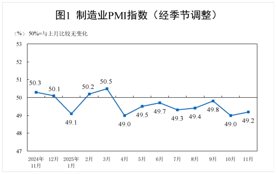 11月份,制造業(yè)采購經(jīng)理指數(shù)(PMI)為49.2%,比上月上升0.2個(gè)百分點(diǎn),景氣水平有所改善。