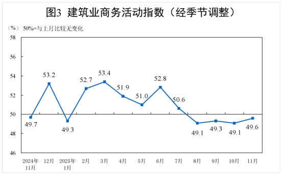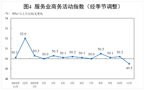 11月份,非制造業(yè)商務(wù)活動(dòng)指數(shù)為49.5%,比上月下降0.6個(gè)百分點(diǎn)。