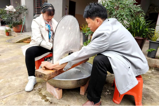 在阿都鄉(xiāng)同興村,徐學雷、李梅慧夫妻二人正在把剛剛清洗好的蠶絲進行抽絲,進入冬季、臨近年末,一大批客戶都定制了過冬的蠶絲被,夫妻二人加班加點忙著趕制。