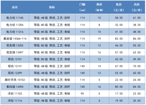 本周綢緞指數(shù)協(xié)作單位成交價(jià)格區(qū)間