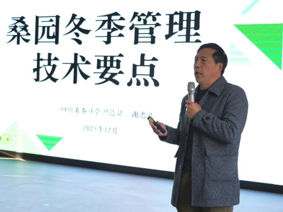 授課內(nèi)容緊密結(jié)合涼山州蠶業(yè)生產(chǎn)實際,聚焦桑園冬季管理這一關(guān)鍵環(huán)節(jié),從封園治蟲、清樹清園、剪伐刷干等基礎(chǔ)管理措施,到冬耕施肥、補(bǔ)植嫁接等提質(zhì)增效技巧,再到清理溝渠、桑園間作及桑枝處理等綜合利用方法,進(jìn)行了系統(tǒng)全面的講解,為參會人員送上了一份“技術(shù)干貨”。